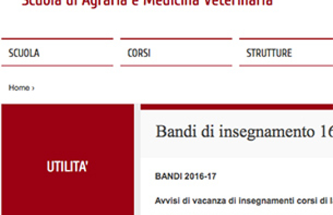 I bandi sono disponibili sul sito della Scuola al link http://www.agrariamedicinaveterinaria.unipd.it/bandi-di-insegnamento-16-17