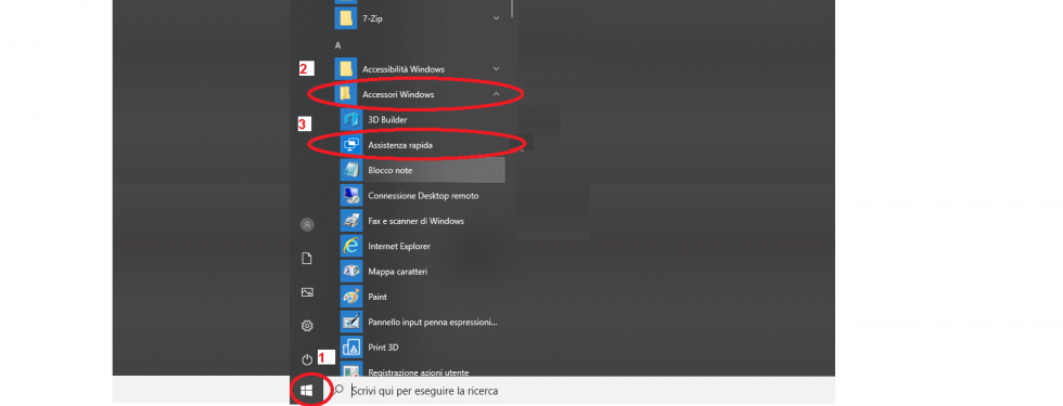 Menu windows, Accessori di windows, assistenza rapida